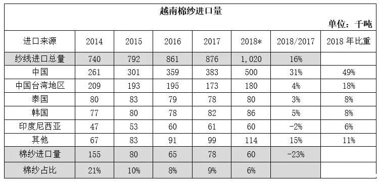 越南棉纱进口主要是人造纤维,棉纱进口数量很少,说明国内棉纱供应越来越充足。